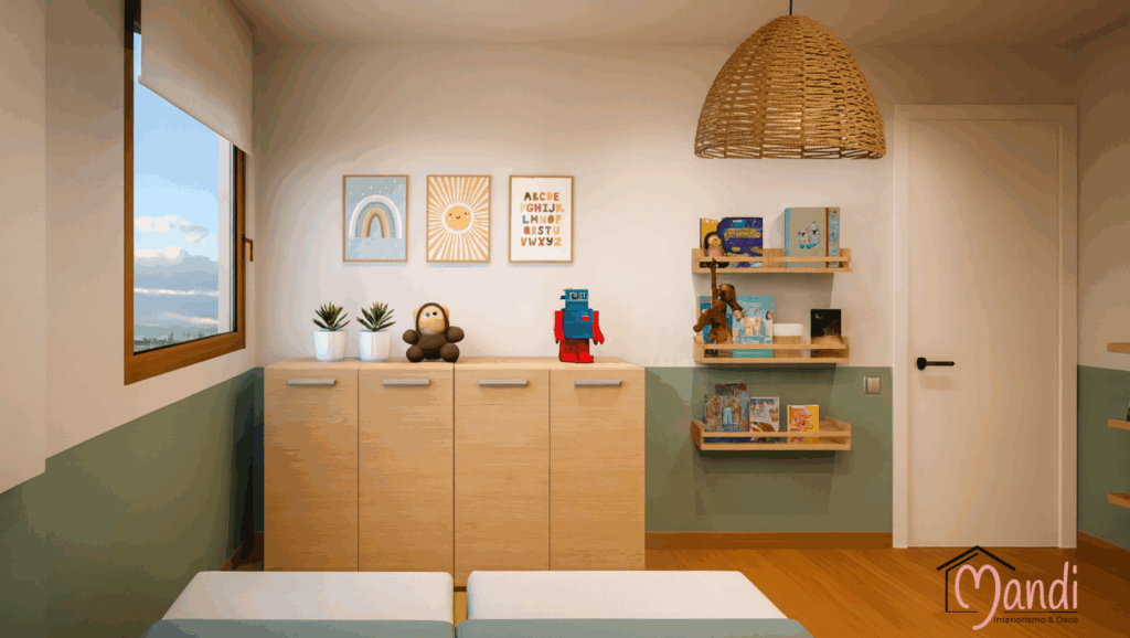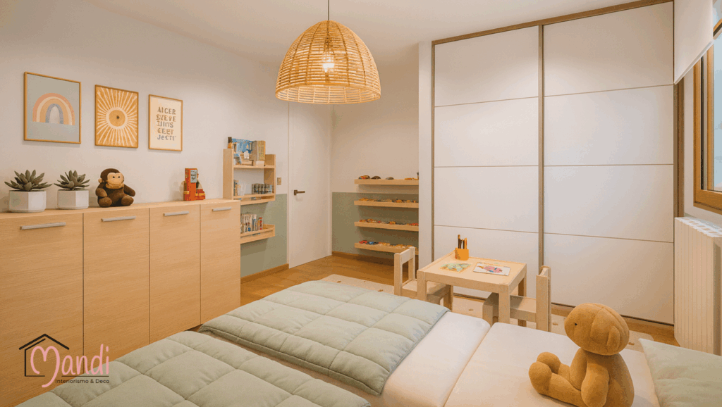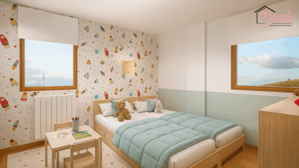 Hoy quiero compartir con vosotros este proyecto de interiorismo online: el diseño y amueblamiento integral de un dormitorio infantil compartido para dos pequeños de 4 y 7 años. Un espacio reducido que, sin embargo, me ofreció la oportunidad perfecta para demostrar que el diseño funcional y la calidez pueden convivir en perfecta armonía.